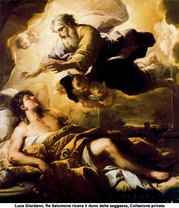 Salomone ereditò un compito molto impegnativo, e la responsabilità che gravava sulle sue spalle era grande per un giovane sovrano. Per prima cosa egli offrì a Dio un solenne sacrificio – "mille olocausti", dice la Bibbia. Allora il Signore gli apparve in visione notturna e promise di concedergli ciò che avrebbe domandato nella preghiera. E qui si vede la grandezza d’animo di Salomone: egli non domanda una lunga vita, né ricchezze, né l’eliminazione dei nemici; dice invece al Signore: "Concedi al tuo servo un cuore docile, perché sappia rendere giustizia al tuo popolo e sappia distinguere il bene dal male" (1 Re 3,9). E il Signore lo esaudì, così che Salomone divenne celebre in tutto il mondo per la sua saggezza e i suoi retti giudizi.